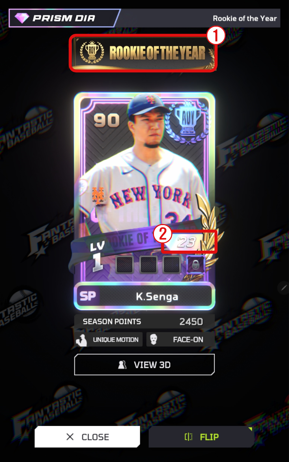 - “Rookie of the Year” cards are Theme Cards that commemorate rookie players who brought excitement to fans with their impressive performances during their debut seasons.